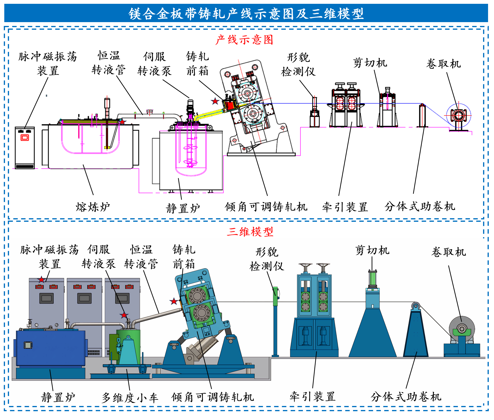 ② 设计发明了电磁辅助倾斜式铸轧成形生产工艺技术;